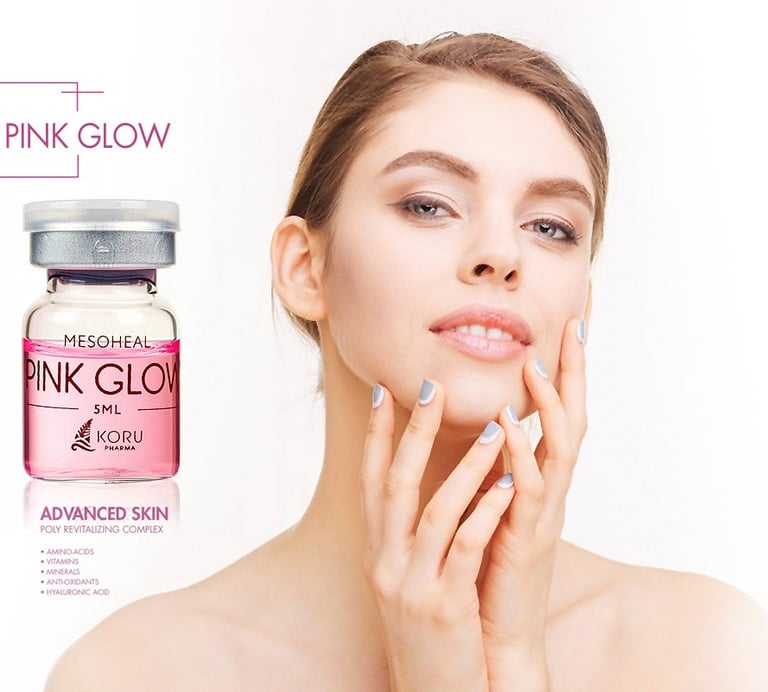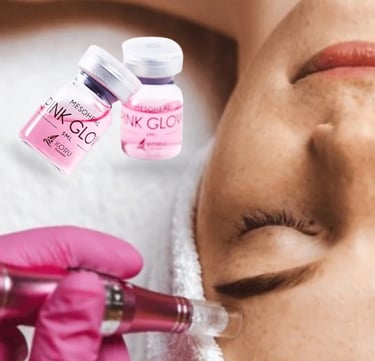 El tratamiento Pink Glow ofrece varios beneficios para la piel, incluyendo la disminución de líneas finas y arrugas, la mejora de la luminosidad y uniformidad del tono, la reducción de manchas y la prevención de nuevas, la nutrición e hidratación profunda de la piel, y la estimulación de la producción de colágeno y elastina